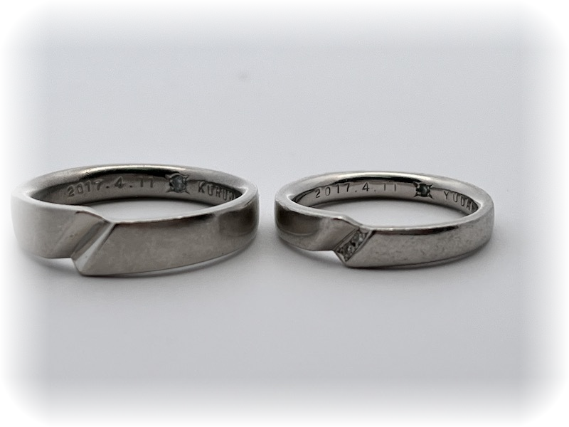 今回のお二人は、ほぼ毎日ずっと指輪をつけていらっしゃるということで、やはり小傷がつきものです。リングはプラチナ950で変色することもないのですが、傷はどうしようもありません。表面の磨きを施します。