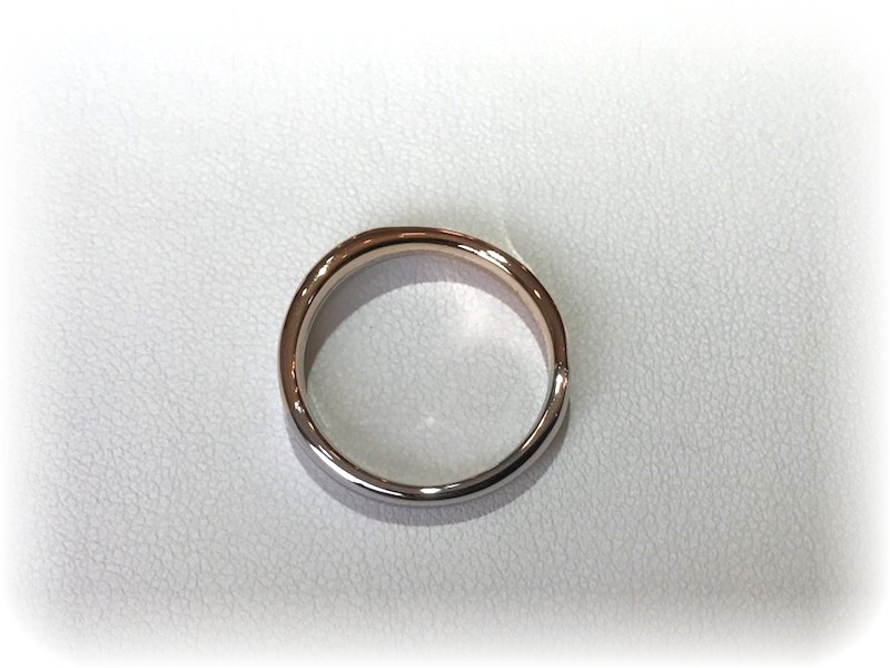 10年ほど前に他県他店で購入のプラチナとゴールドのコンビマリッジリングです。「コンビの指輪のサイズ直しは出来ますか?」とお問い合わせを頂きご来店されました。
