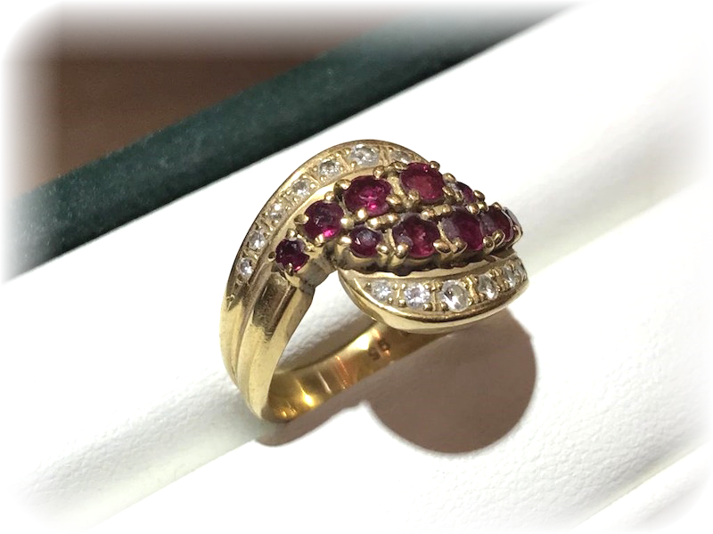 「宝石の展示会で購入したリングです。変形してサイズも合わないのですが。他店で購入した指輪ですが、修理してもらえますか」と、ご来店されました。